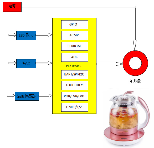 随着人们生活水平的提高,喜欢养生的人越来越多,熊猫体育微电子推出高性价比养生壶控制解决方案,方案具有温度、预约时间、烹饪功能任意选择、外围电路简洁等优点,提供完整解决方案。