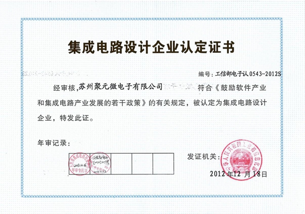 集成电路企业认定证书
